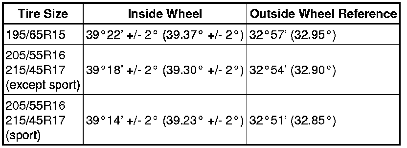 * If the right and left inside wheel angles differ from the specified value, check and adjust the right and left rack end lengths.