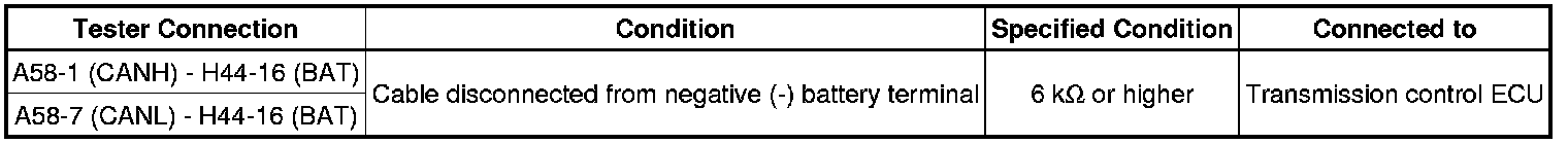 If the resistance changes to 6 kOhms or higher when the connector is disconnected from the ECU (or sensor), there may be a short in the ECU (or sensor).