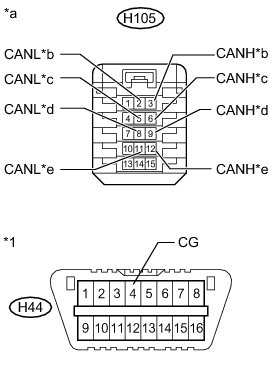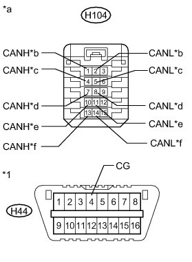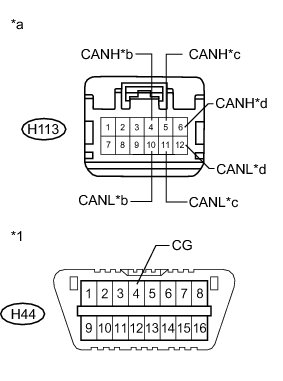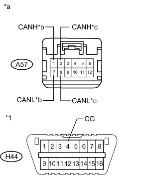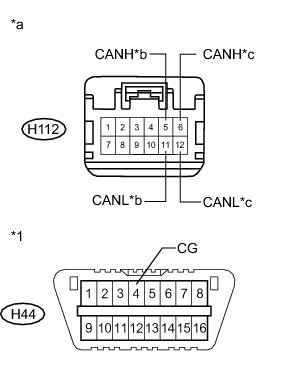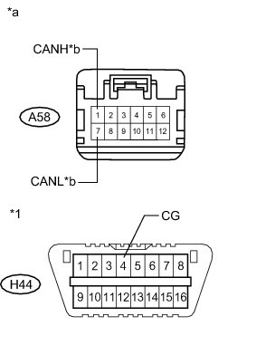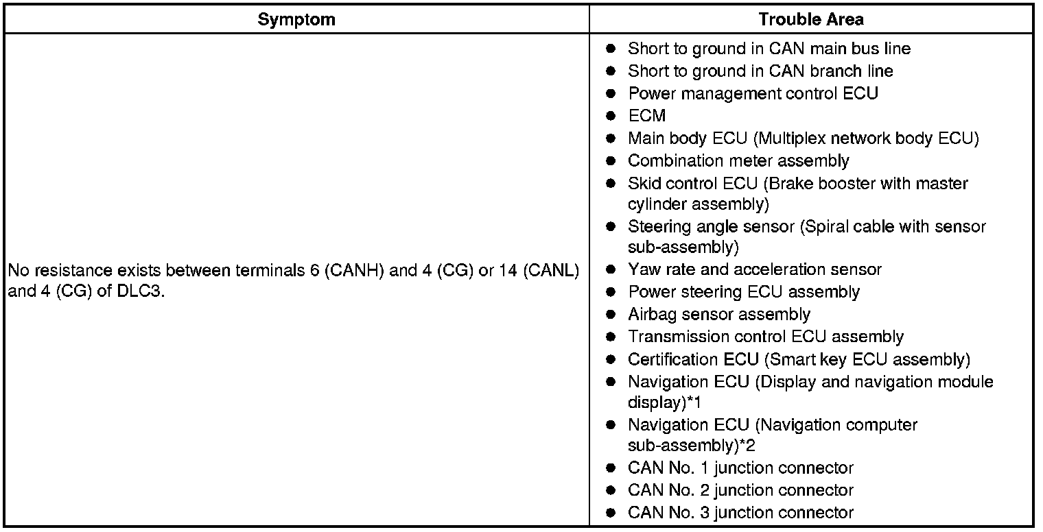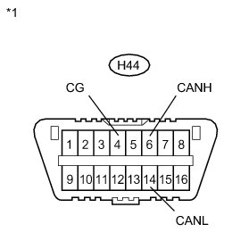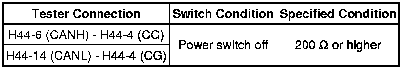 There may be a short circuit between one of the CAN bus lines and GND when there is no resistance between terminals 6 (CANH) and 4 (CG) or 14 (CANL) and 4 (CG) of the DLC3.