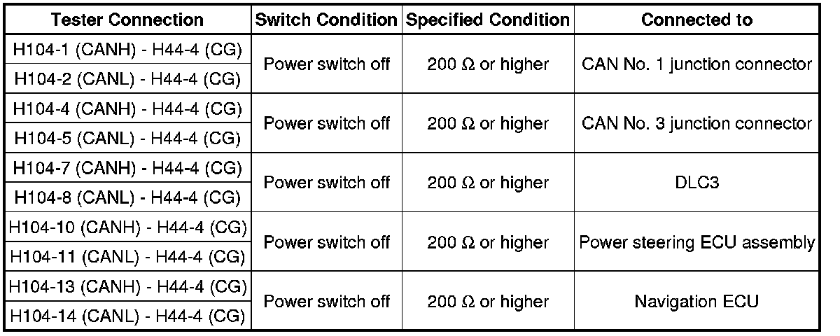 * Before measuring the resistance, leave the vehicle as is for at least 1 minute and do not operate the power switch, any other switches or the doors. If any doors need to be opened in order to check connectors, open the doors and leave them open.