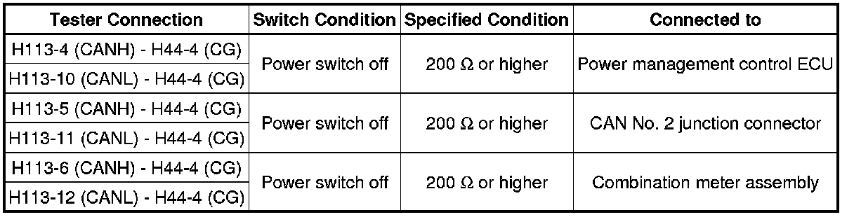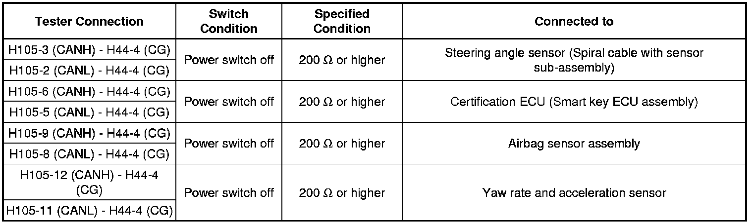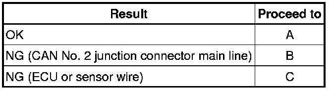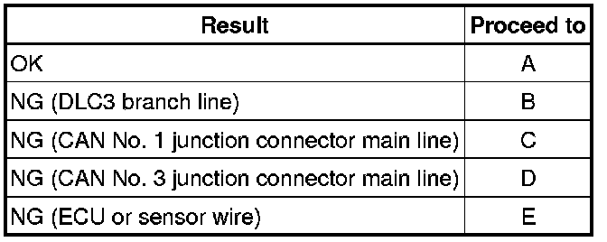 If the ECU or sensor has multiple connectors, disconnect the connector that includes the CAN bus lines. To determine the ECU or sensor that is connected to the shorted bus line, refer to the terminals of ECU tables CAN Communication System.