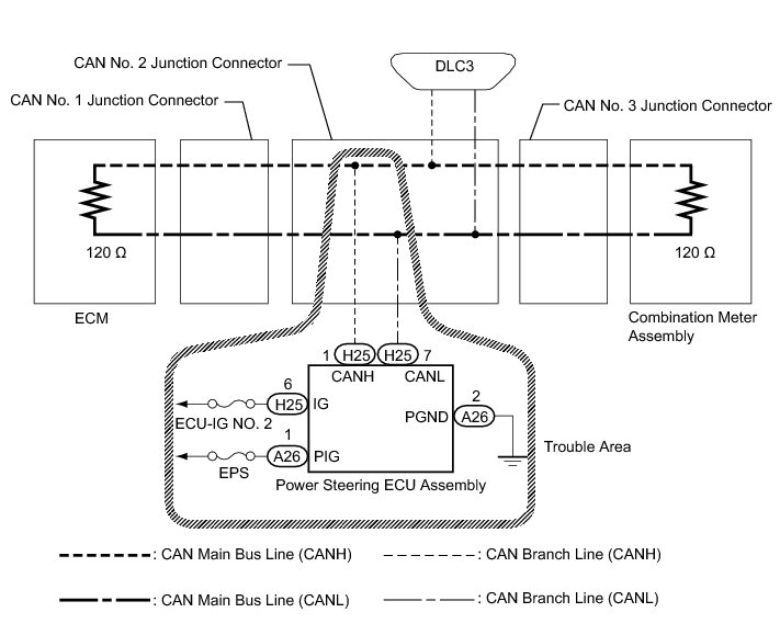 1. CHECK CAN BUS LINE FOR DISCONNECTION (POWER STEERING ECU ASSEMBLY BRANCH LINE)
