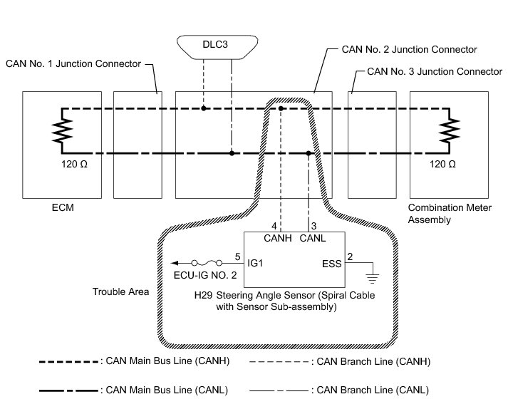 1. CHECK CAN BUS LINE FOR DISCONNECTION (STEERING ANGLE SENSOR BRANCH WIRE)