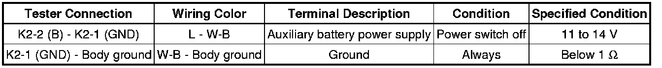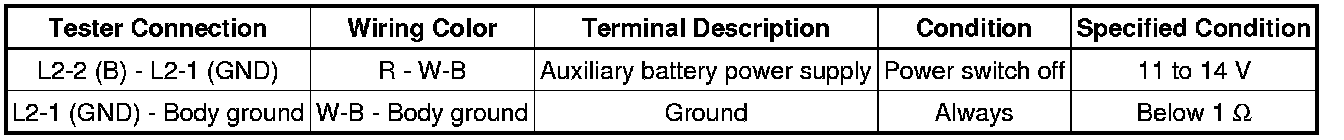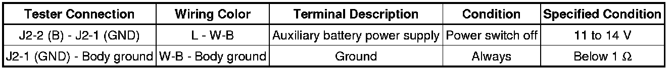 If the result is not as specified, there may be a malfunction in the wire harness.