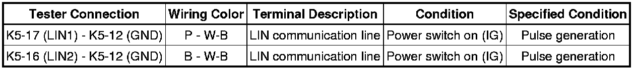 (d) Measure the voltage and check for pulses according to the value(s) in the table below.