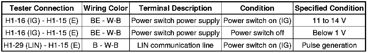 If the result is not as specified, the main body ECU (multiplex network body ECU) or instrument panel junction block assembly may be malfunctioning.