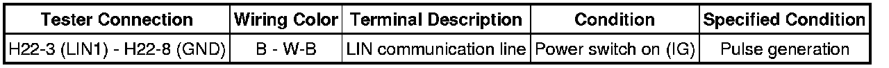If the result is not as specified, the power window regulator motor assembly (for rear LH side) may be malfunctioning.