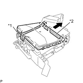 (b) Slide the guide of the main body ECU along the housing sidewall so that it contacts the junction block fuses as shown in the illustration.
