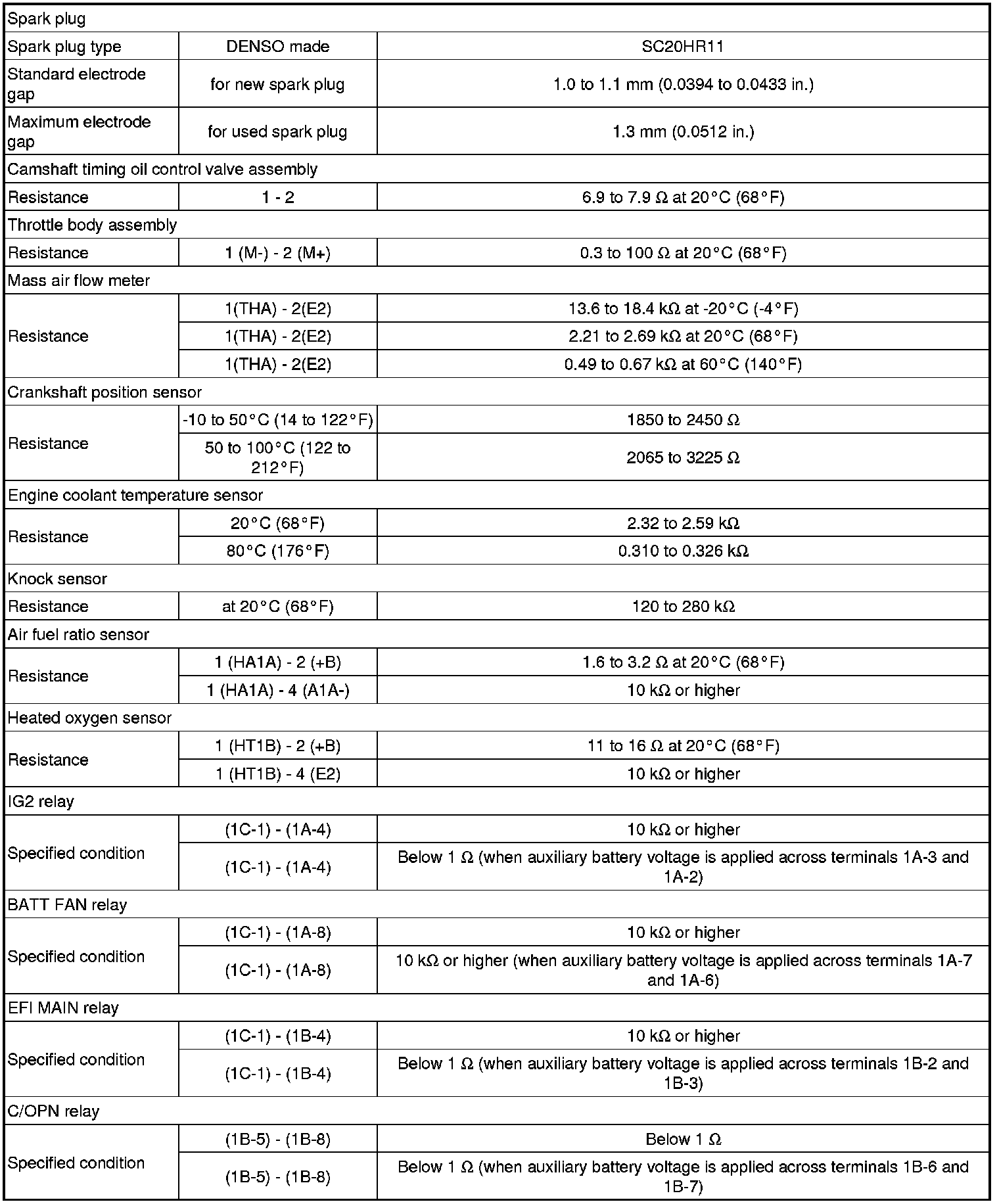 SPECIFICATIONS: 2ZR-FXE ENGINE CONTROL: SERVICE DATA