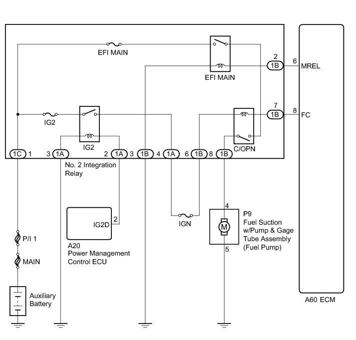 5. CHECK HARNESS AND CONNECTOR (NO. 2 INTEGRATION RELAY (C/OPN RELAY) - FUEL PUMP)