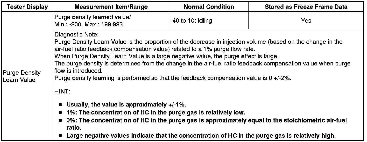 Purge Density Learn Value