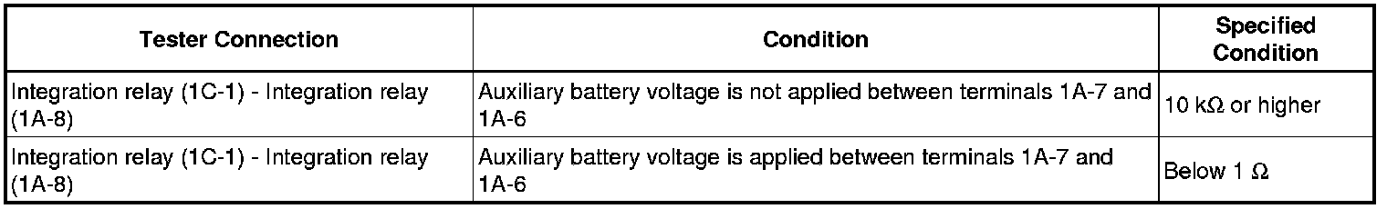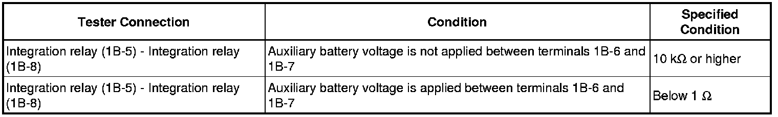 If the resistance is not as specified, replace the integration relay.