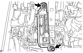 (a) Press the claw of the junction block as shown in the illustration to release the lock.