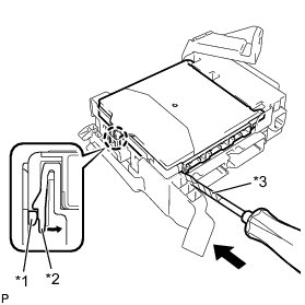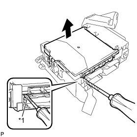 (c) Using the screwdriver, carefully raise the main body ECU up to the position where the connector becomes disengaged.