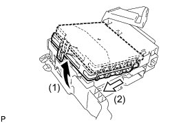 (d) Raise the main body ECU as shown by the arrow (1), and then pull it out as shown by the arrow (2) in the illustration.