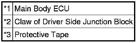 (b) With the junction block lock released, insert a screwdriver with its tip wrapped with protective tape horizontally between the main body ECU and junction block.
