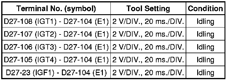 Ignition coil IGT Signal (from ECM to Igniter) and Ignition coil IGF Signal (from Igniter to ECM)