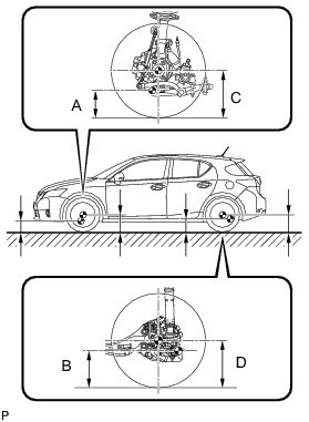 * B: Ground clearance of rear No. 2 suspension arm set bolt center