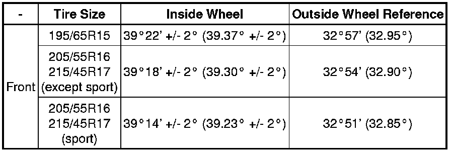 SPECIFICATIONS: ALIGNMENT / HANDLING DIAGNOSIS: SERVICE DATA