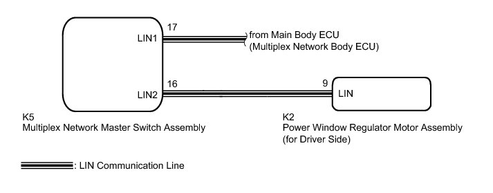 * The power window control system uses a LIN communication system. Inspect the communication function by following How to Proceed with Troubleshooting How To Proceed With Troubleshooting. Troubleshoot the power window control system after confirming that the communication system is functioning properly.