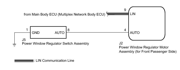 * The power window control system uses a LIN communication system. Inspect the communication function by following How to Proceed with Troubleshooting How To Proceed With Troubleshooting. Troubleshoot the power window control system after confirming that the communication system is functioning properly.