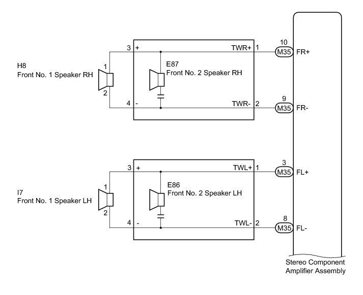 (d) Measure the resistance between each of the front No. 2 speakers and the stereo component amplifier assembly to check for an open circuit in the wire harness.