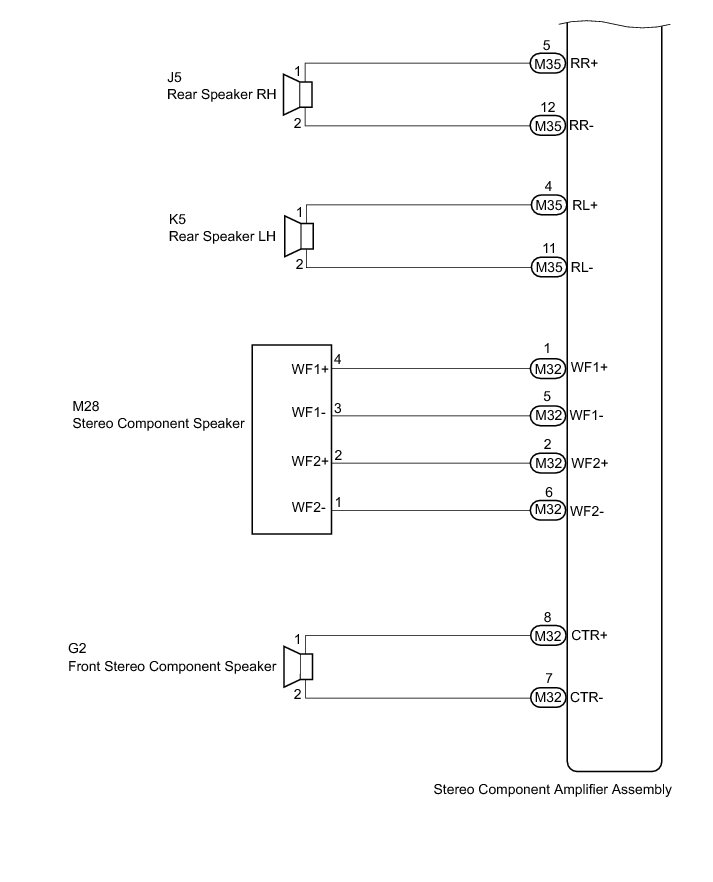 (a) Disconnect stereo component amplifier assembly connector M32 and speaker connectors M28 and G2.