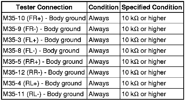 (c) Measure the resistance between each of the front No. 1 speakers and body ground to check for a short circuit in the wire harness.