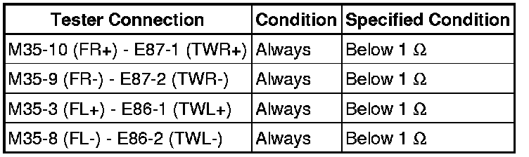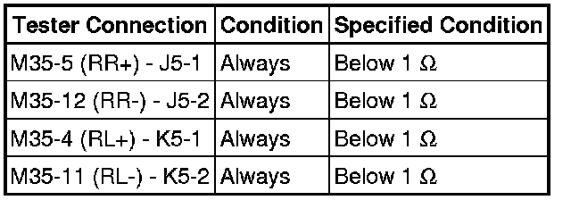 (e) Measure the resistance between each of the rear speakers and the stereo component amplifier assembly to check for an open circuit in the wire harness.