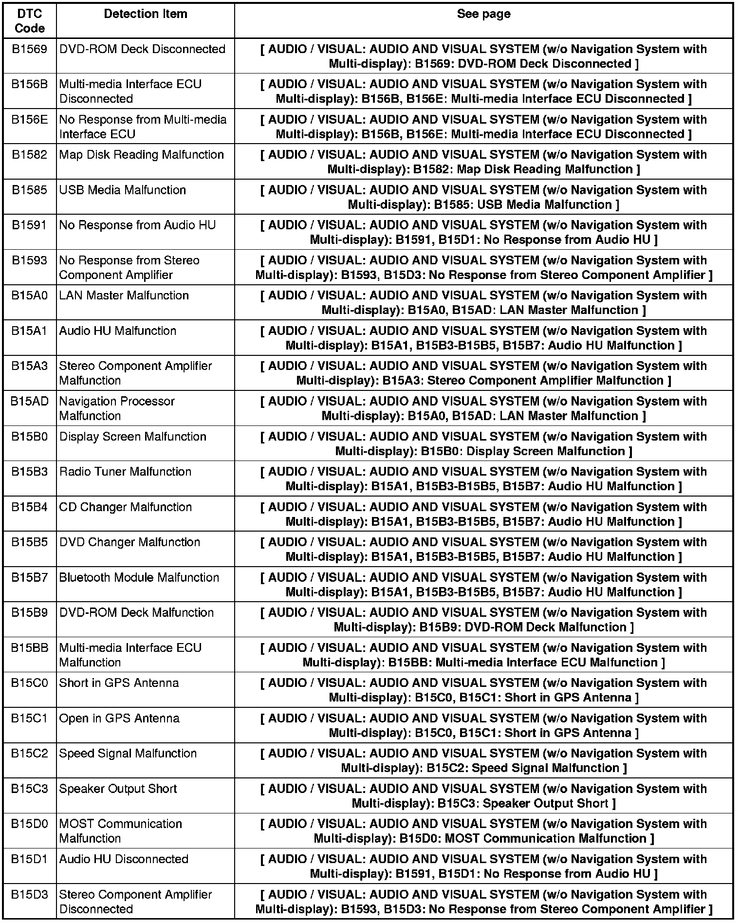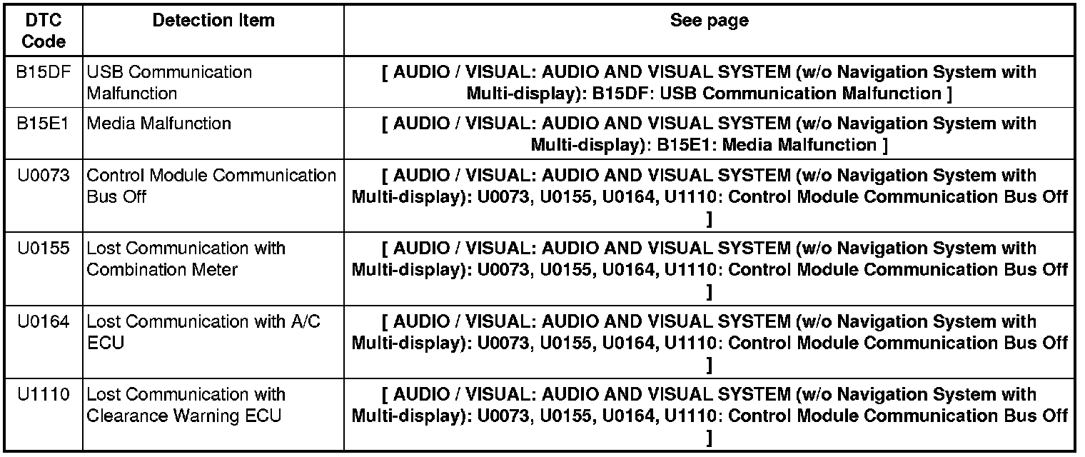 AUDIO / VISUAL: AUDIO AND VISUAL SYSTEM (w/o Navigation System with Multi-display): DIAGNOSTIC TROUBLE CODE CHART