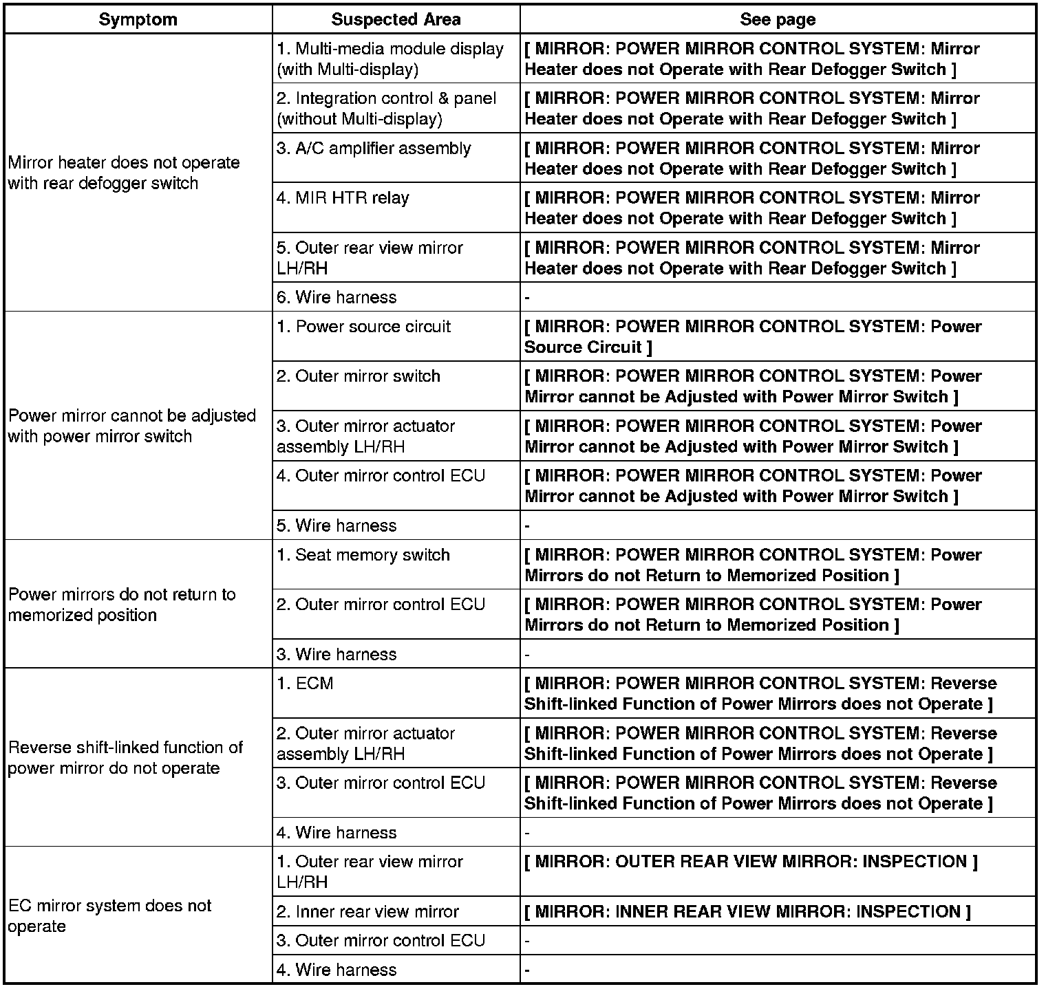 MIRROR: POWER MIRROR CONTROL SYSTEM: PROBLEM SYMPTOMS TABLE