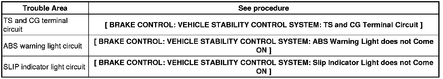 * If the ABS warning and SLIP indicator lights do not blink, inspect the TS and CG terminal circuit, and ABS warning and SLIP indicator light circuits.