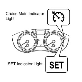 * The ECM illuminates the combination meter's cruise main indicator light when it receives a cruise control main switch ON signal.