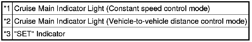 * The vehicle-to-vehicle distance control mode is always selected when starting up the dynamic radar cruise control system (Cruise main indicator light and RADAR READY indicator comes on).