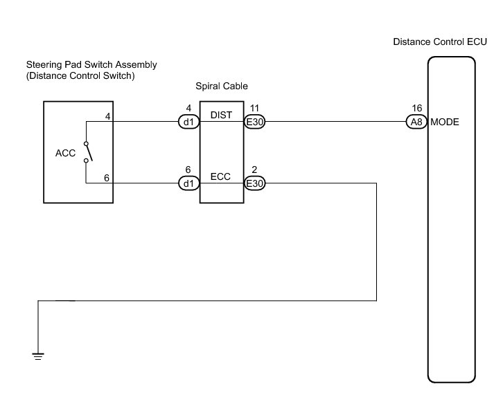 NG -- REPAIR OR REPLACE HARNESS OR CONNECTOR (SPIRAL CABLE - DISTANCE CONTROL ECU)