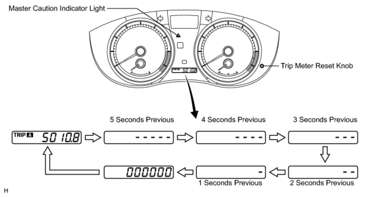 (d) Turn the engine switch on (IG) while pressing and holding the trip meter reset knob. Hold the trip meter reset knob until the following conditions are met and 5 seconds have passed.