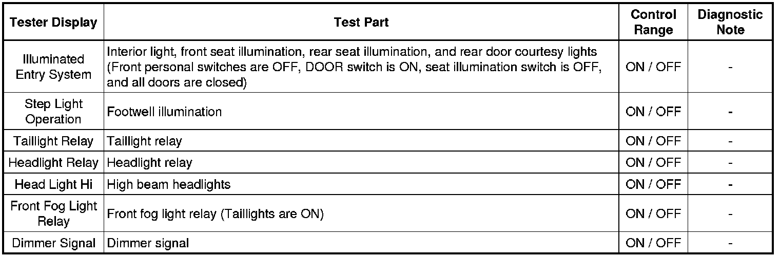 LIGHTING: LIGHTING SYSTEM: DATA LIST / ACTIVE TEST
