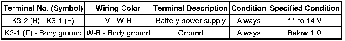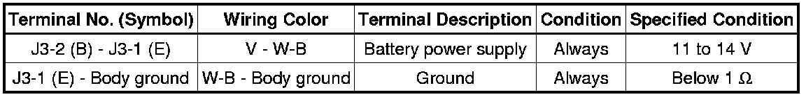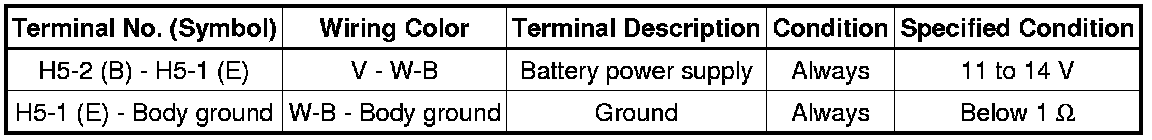 If the result is not as specified, there may be a malfunction in the wire harness.