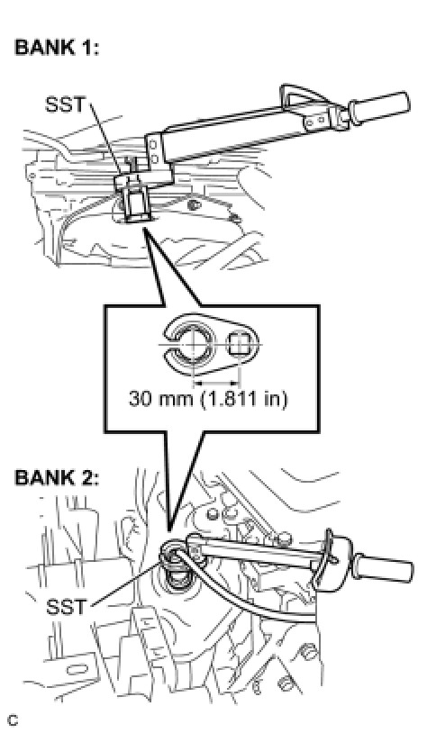 The torque shown above should be used for tightening without using SST. When the SST is used for tightening, the torque should be calculated based on the length of the SST Service Precautions.