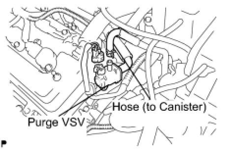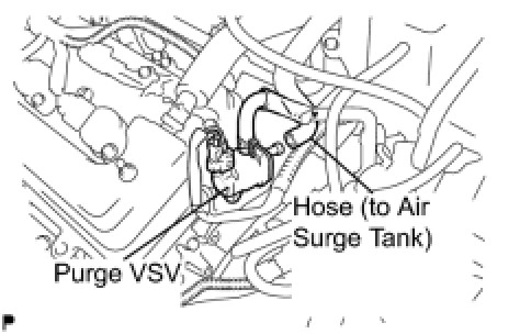 (a) Disconnect the hose (connected to the intake air surge tank assembly) from the purge VSV.