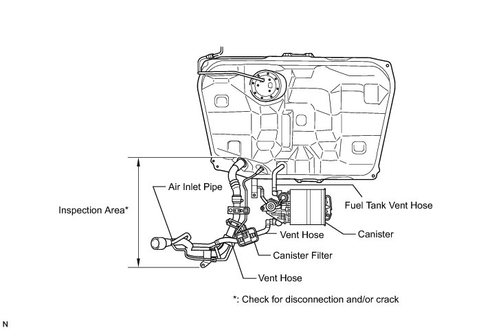 * When replacing the canister, check the canister pump module interior and related pipes for water, fuel and other liquids. If liquids are present, check for disconnections and/or cracks in the following: 1) the pipe from the air inlet port to the canister pump module; 2) the canister filter; and 3) the fuel tank vent hose.