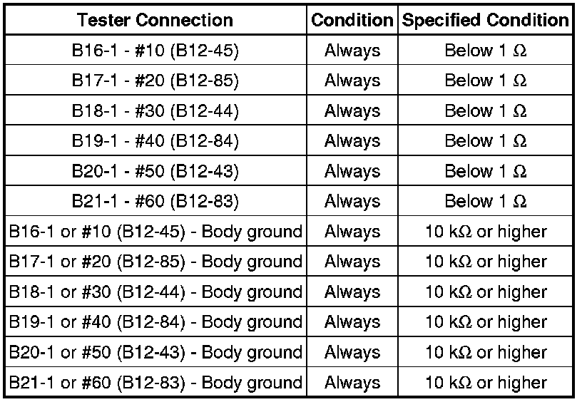 3. CHECK HARNESS AND CONNECTOR (FUEL INJECTOR ASSEMBLY - ECM)