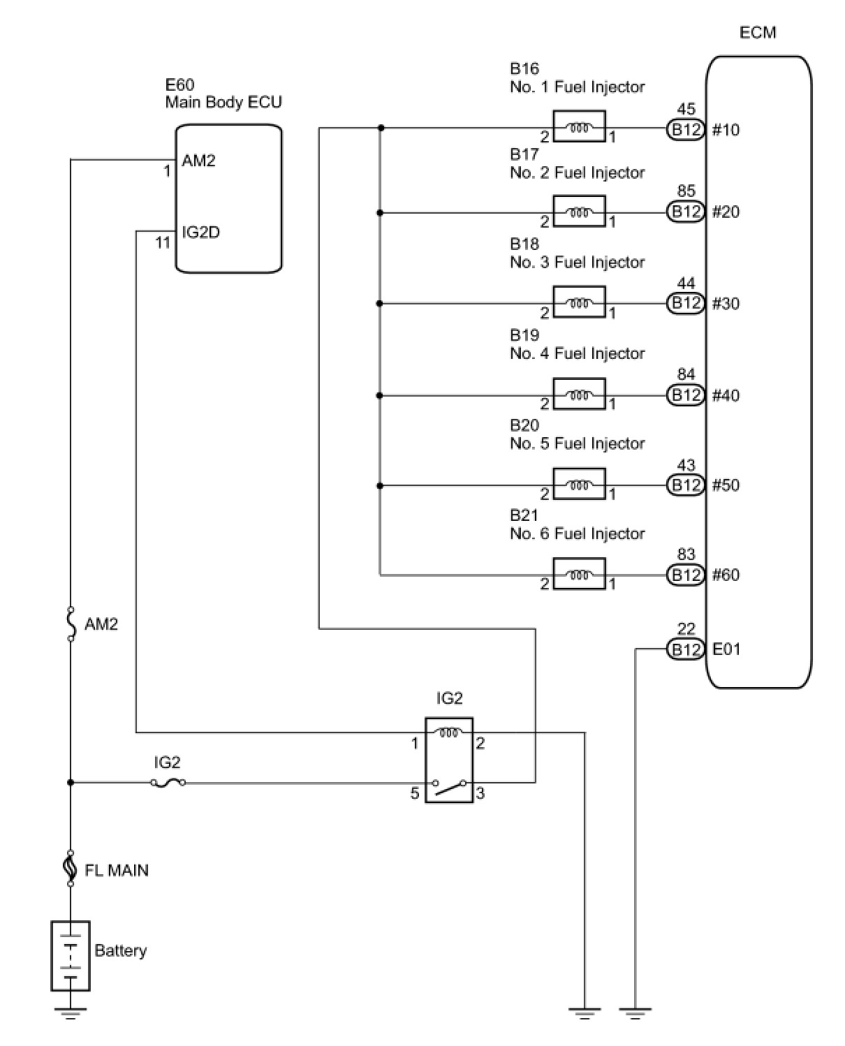 2GR-FE ENGINE CONTROL SYSTEM: SFI SYSTEM: Fuel Injector Circuit