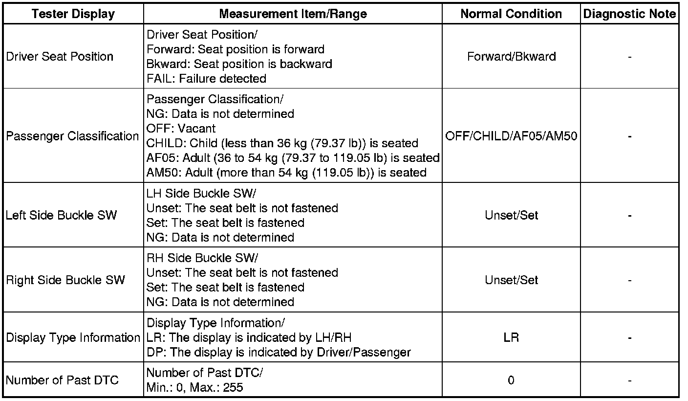 1. DATA LIST FOR CENTER AIRBAG SENSOR ASSEMBLY