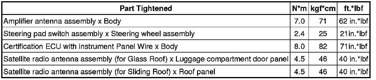 SERVICE SPECIFICATIONS: AUDIO / VISUAL: TORQUE SPECIFICATIONS