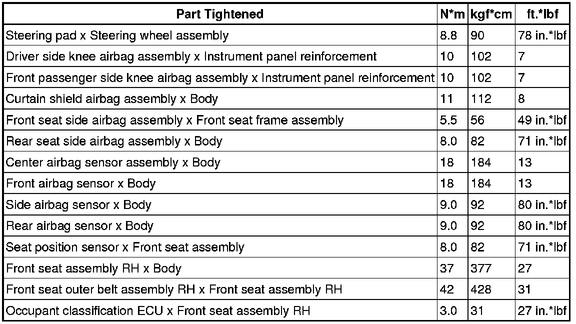 SERVICE SPECIFICATIONS: SUPPLEMENTAL RESTRAINT SYSTEM: TORQUE SPECIFICATIONS