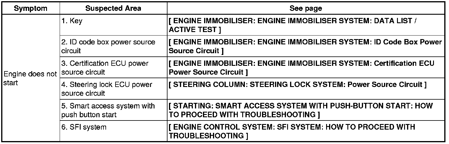 ENGINE IMMOBILISER: ENGINE IMMOBILISER SYSTEM: PROBLEM SYMPTOMS TABLE