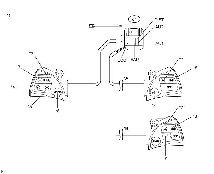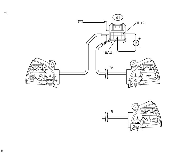 (1) Connect a positive (+) lead to terminal IL+2 and a negative (-) lead to terminal EAU of the steering pad switch assembly connector.