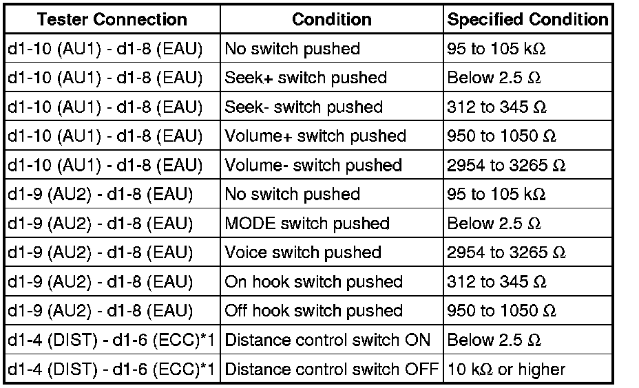 AUDIO / VISUAL: STEERING PAD SWITCH: INSPECTION