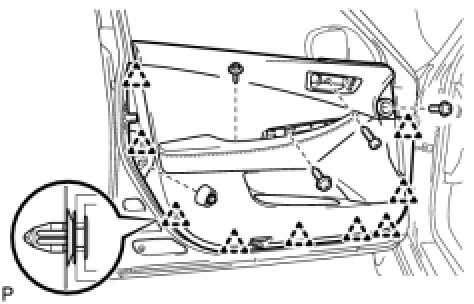 (c) Engage the 9 clips and install the front door trim board to the front door panel.